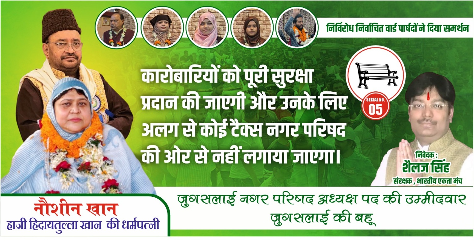 एक तरफ जहाँ जुबानी जंग जारी है, वहीं दूसरी ओर अध्यक्ष पद की प्रत्याशी नौशीन खान ने डोर-टू-डोर अभियान से मोर्चा संभाल लिया है। उन्होंने जुगसलाई की सूरत बदलने के लिए 5 सूत्रीय संकल्प पेश किए। उन्होंने कहा कि छात्रों के लिए प्लस-टू स्कूल और मेधावी बच्चों हेतु निशुल्क कोचिंग की व्यवस्था की जाएगी। महिला सशक्तिकरण को बढ़ावा दिया जाएगा। स्वरोजगार के लिए तकनीकी शिक्षा और विशेष पार्क की व्यवस्था होगी।